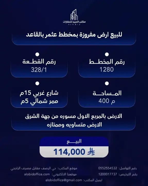 رقم الوحدة #ارض مفروزه بعثمر القاعد رقم العرض 93