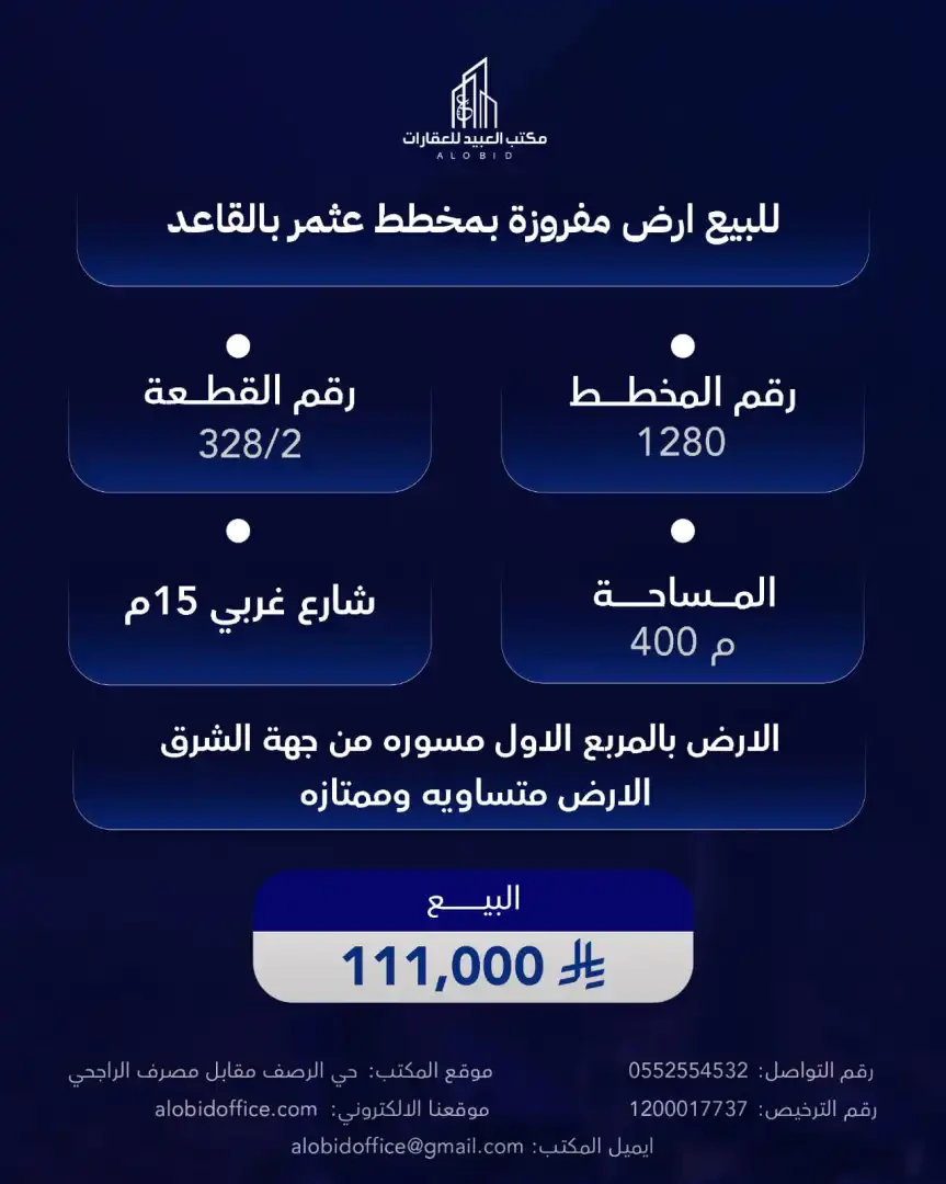 رقم الوحدة #ارض مفروزه بعثمر القاعد رقم العرض 94